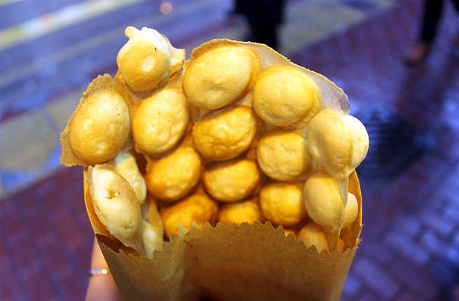 Wafel yang berbentuk bulat seperti telur ini punya rasa coklat, teh hijau, hingga jahe.