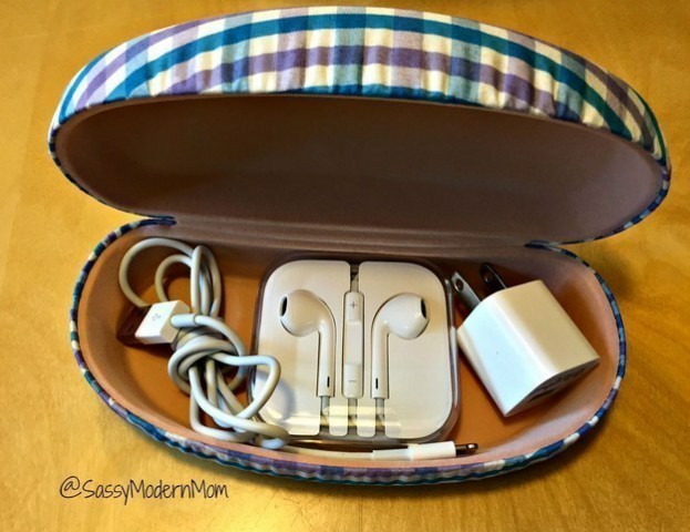 Manfaatkan tempat kacamata untuk menaruh earphone, kabel charger dan kabel-kabel lainnya.