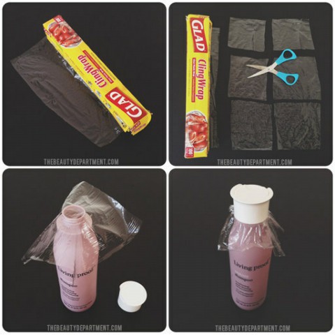 Kamu bisa manfaatkan plastik pembungkus untuk mencegah kebocoran pada barang-barang cair yang ada di botol dengan meletakan potongan plastik pembungkus di tutup botol.