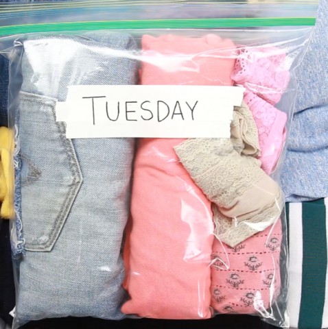 Buat pasanganmu yang udah punya rencana outfit per harinya seperti apa saat traveling nanti, lebih baik ingatkan untuk mengelompokkan baju-baju tersebut ke dalam plastic organize lengkap dengan keterangannya, dijamin akan mempermudah banget deh.