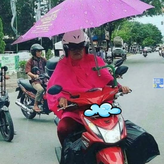 Yang Penting Heppiii. Udah bukan rahasia umum kalau emak-emak bisa melakukan hal sesukanya, karena emak-emak mah bebas. Salah satu hal suka-suka yang dilakukan emak-emak adalah penggunaan payung seperti berikut ini. Simak deh, nggak usah heran ya, namanya juga emak-emak.