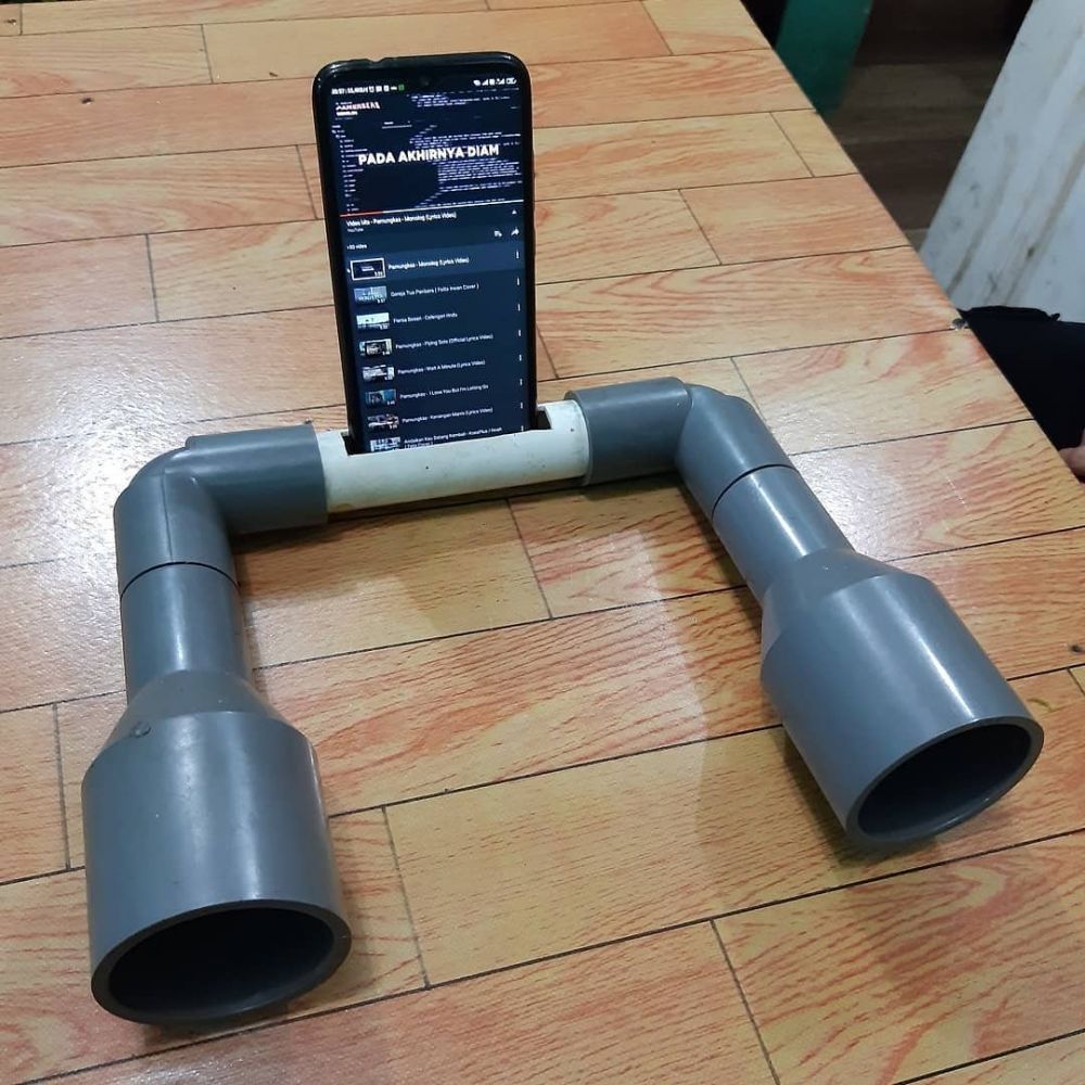 Ini baru DIY, nggak cuma holder, plus speaker juga. Gokil.