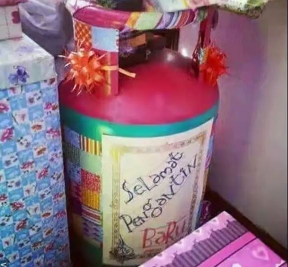Yang Penting Heppiii. Saat ada temen deket yang nikah, biasanya ngasih sebuah barang lebih berharga daripada ngasih uang. Biar beda sama orang lain, dan kelihatan ngasih effort lebih gitu lo. Tapi biasanya momen ini justru dimanfaatkan temen nggak akhlaq dengan ngasih barang-barang nggak biasa dan agak nyleneh, kaya berikut ini. Langsung scroll kuy.