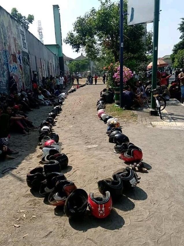 Ngantri panas-panasan, ngapain? Taruh helm aja.