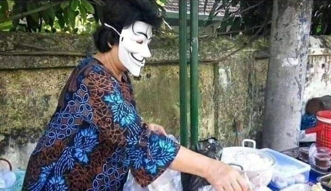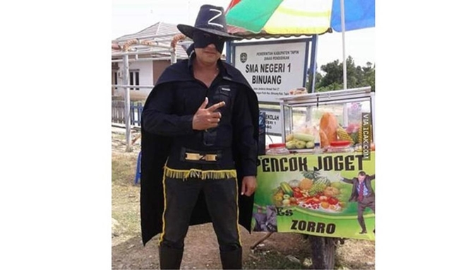 Yang Penting Heppiii. Dengan persaingan yang semakin ketat, para pedagang musti putar otak agar dagangan mereka tetap laris manis dan bisa terus dapat cuan. Salah satu hal yang mereka lakukan adalah dengan memakai kostum unik seperti di bawah ini. Kreatif banget.