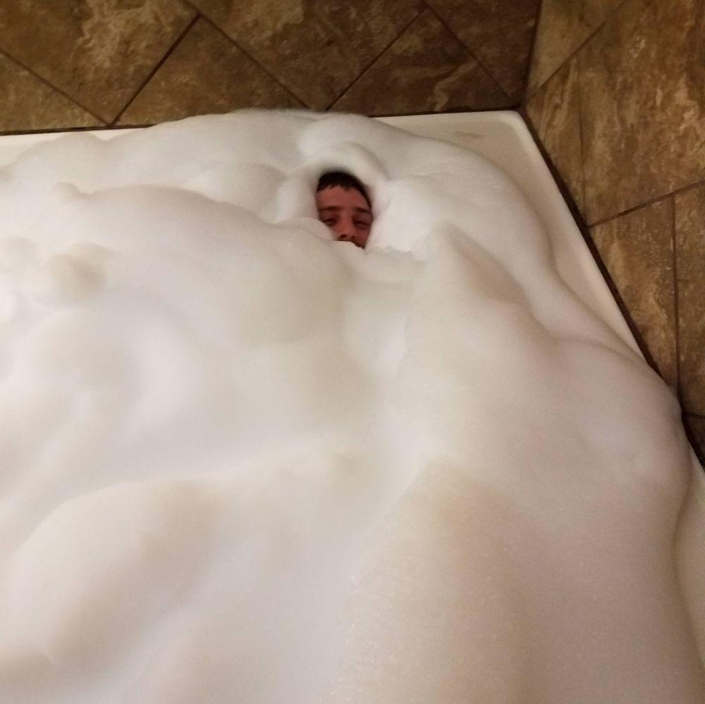 Baru ditinggal sebentar, cowok ini malah bikin busa sekamar mandi. Ckckck.