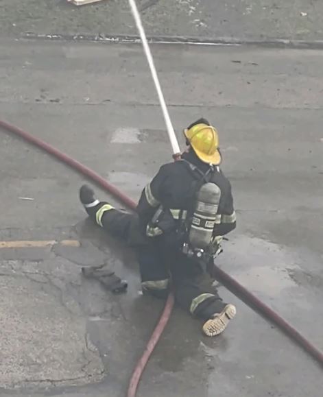 Jarang-jarang lihat pemadam kebakaran split kaki begini.