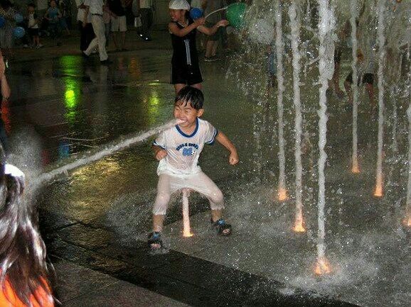 Yang Penting Heppiii. Namanya anak-anak, udah pasti nggak bakal tahan diem doang lihat air mancur, pasti langsung deketin. Awalnya cuma pegang-pegang dikit, lama-lama penasaran, tahu-tahu udah basah kuyup aja. Nah saking excitednya, kadang ada momen-momen mengejutkan yang mendadak muncul tanpa mereka sadari, kaya yang berikut, ngakak banget.