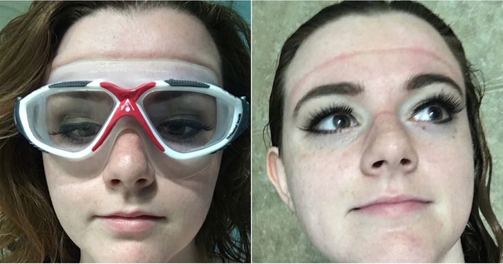 Buat cewek-cewek, mbak ini bilang, kalau mau keramas tapi make up tetep cetar, ambil kacamata renang.