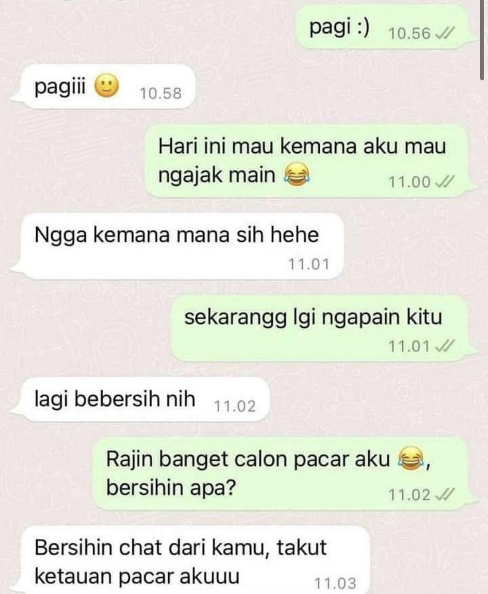 Yang Penting Heppiii. Kalau udah lama nggak ngobrol di chat, atau lagi nggak ada bahan obrolan, pertanyaan paling klasik yang sering banget ditanyain yaitu, Lagi apa?”. Saking seringnya dapat pertanyaan kaya gini, wajar sih kalau lama-lama bosan juga. Rasa bosan itulah yang memicu keluarnya jawaban sinis, seperti yang berikut ini.