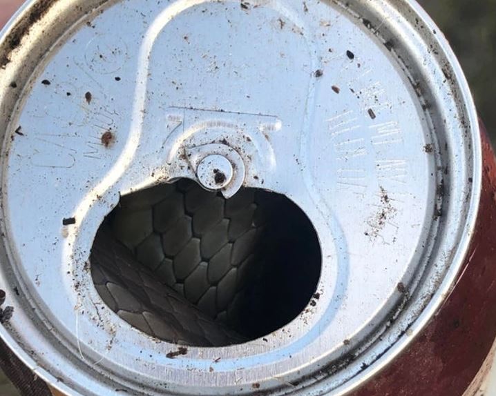 Ular di dalam kaleng soda bekas. Untung nggak masukin tangan ke dalamnya.