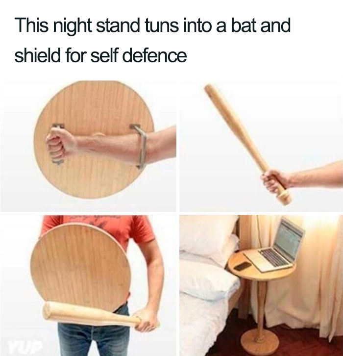 3 in 1 nih, bisa jadi meja, tongkat pemukul baseball dan tameng, keren.