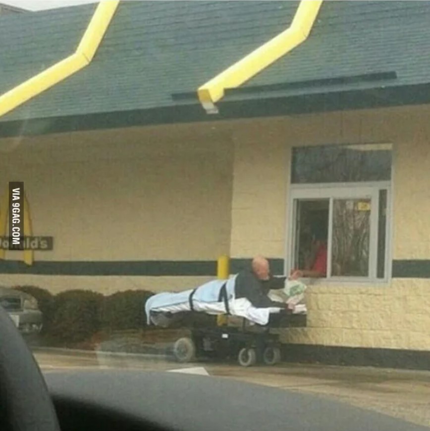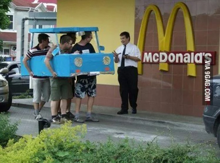 Yang Penting Heppiii. Layanan drive-thru bisa dikatakan sukses dan sekarang nggak cuma diterapkan di bisnis makanan dan minuman aja, lho. Bank, apotek, bahkan pusat vaksinasi pun telah mengadopsi konsep drive-thru. Kocaknya, meskipun udah berkonsep modern, masih ada aja orang yang pakai layanan drive-thru dengan cara yang nyeleneh. Kaya orang-orang berikut ini, keabsurdan nya sampe bikin pelayan cuma bisa menggelengkan kepala. Yuk langsung lihat gambar-gambarnya.