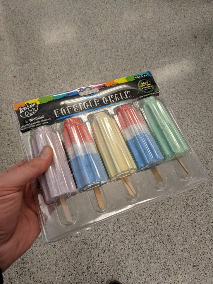 Kapur dengan bentuk es lilin, warna es lilin, bahkan ada gagang kayunya. Hmmm apa yang bisa salah sama rasa penasaran anak-anak?