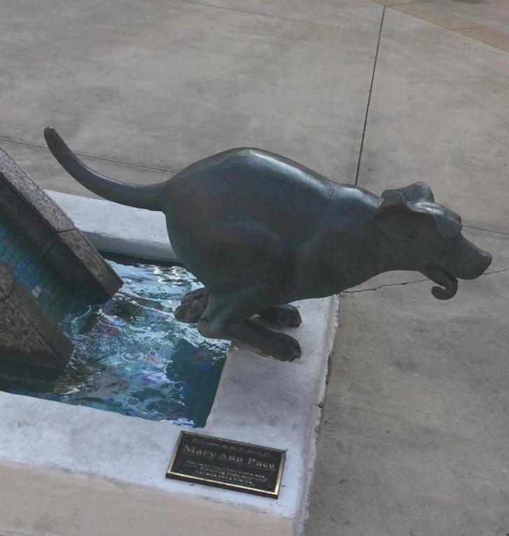 Patung anjing ini bukan seharusnya kaya berlari ya? Kok kaya mau pup.