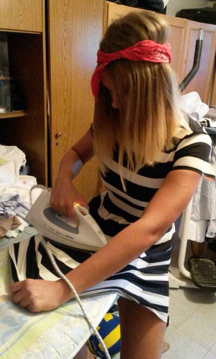 Pas udah terlambat, tapi baju belum disetrika, wanita tahu apa yang harus dilakukan.