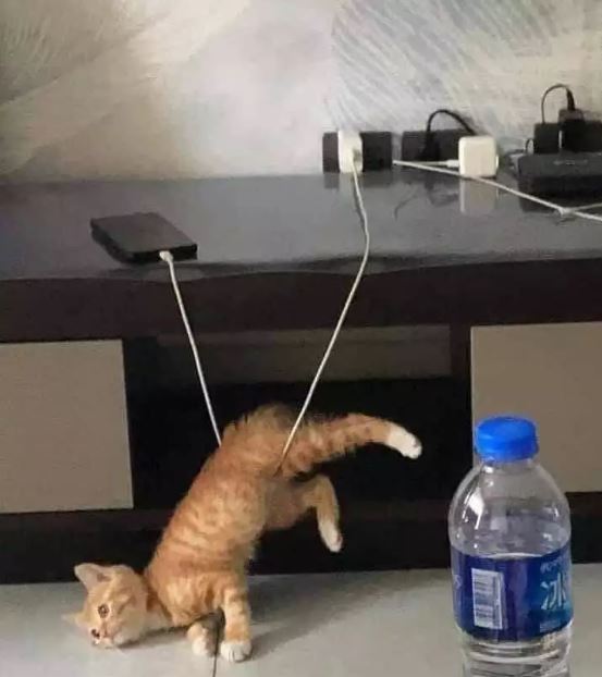 Deg-degan nya dobel nih, takut kucing sama HP jatuh bareng.