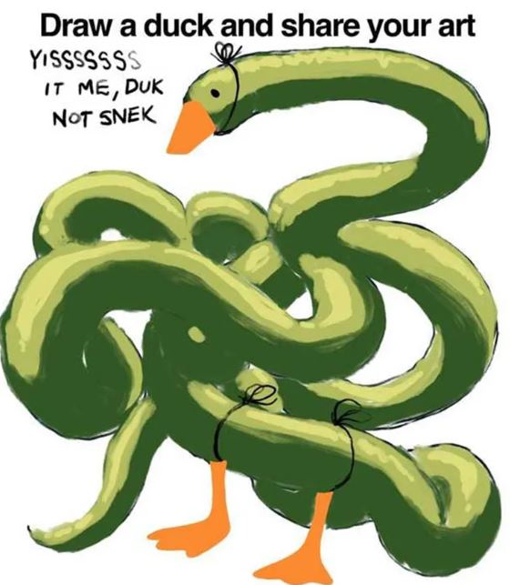 Yang Penting Heppiii. Halaman Facebook 'Smol Animol Memes' membagikan sebuah template yang berupa paruh, mata, dan kaki bebek di atas latar belakang putih, lalu meminta para pengikutnya untuk “draw a duck and share your art.” Orang-orang merespons dengan kreativitas luar biasa. Yuk cus intip kaya apa sih kreasinya.