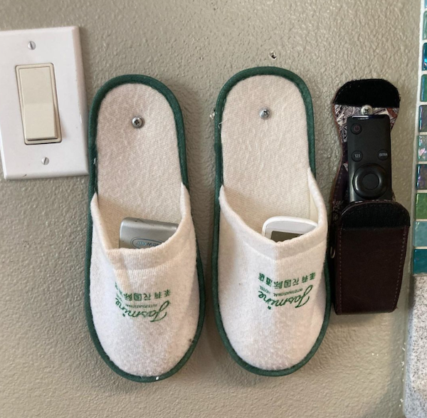 Daripada nggak kepake, sandal hotel disulap jadi kantong serbaguna. Jenius.