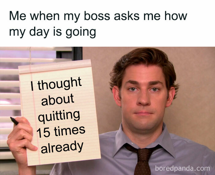 Yang Penting Heppiii. Pekerjaan tetaplah pekerjaan nggak peduli kamu suka apa yang kamu kerjakan atau nggak. Saking kerasnya dunia kerja, kadang kita semua memiliki saat-saat di mana kita nggak pengen kerja, kita hanya mau sesuatu yang berbeda dan nggak berulang-ulang seperti rutinitas kerja. Sementara hal tersebut belum terjadi, meme dunia kerja berikut mungkin bisa membuatmu tertawa dan nangis barengan.