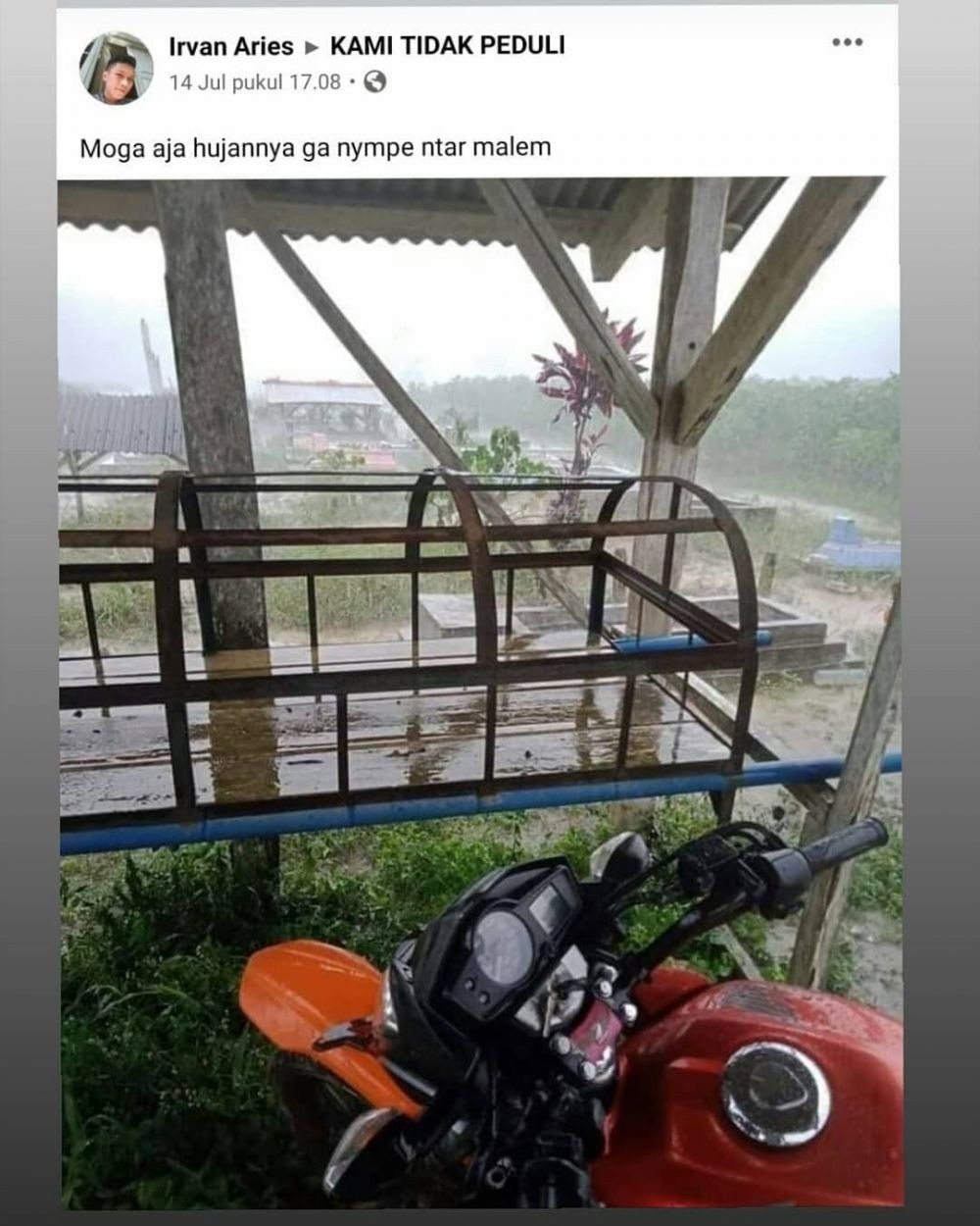 Nonton konser pengennya paling depan biar seru, malah basah kuyup. Dendam ato gimana sih, dari hati banget nyemprotnya bang.