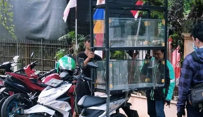 Bisa-bisanya nyuruh ngirim dua akuarium besar pake motor. Nangis banget.