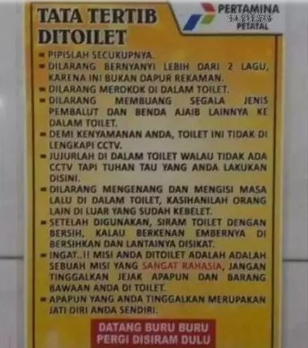Yang Penting Heppiii. Di Indonesia, hampir semua orang punya kendaraan, entah motor atau mobil. Nah, dengan banyaknya armada ini, otomatis kebutuhan bahan bakar melonjak tinggi dong. Gak heran kalo pom bensin jadi tempat rame, apalagi kalo udah jam-jam sibuk. Dan seringkali, di situ ada berbagai info yang di-share sama pihak pom bensin ke para pelanggan. Biasanya, info itu ditulis dan dipajang di tempat yang keliatan banget. Cuma kadang pemberitahuannya bikin ngakak, tapi mungkin malah melekat di otak. Intip yuk potretnya berikut.