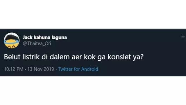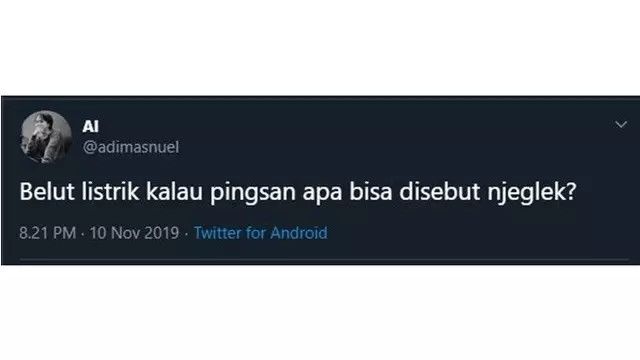 Untungnya belut listrik nggak dari Jawa, jadi kayanya nggak bakal njeglek.