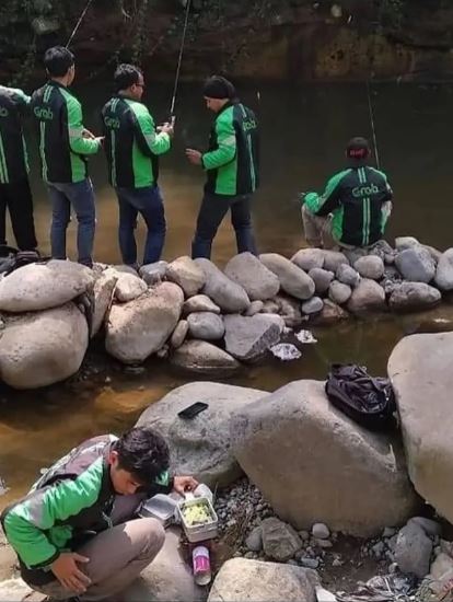 Salut buat tiga cowok di belakang, bisa pas lompatnya.