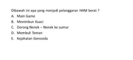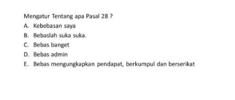 Yang Penting Heppiii. Soal ujian pilihan ganda adalah soal yang paling disukai pelajar, karena relatif lebih gampang dijawab ngawur, wkwkwk. Meskipun demikian, pilihan biasanya jawaban yang tersedia masih nggak jauh dari materi yang diberikan. Tapi yang berikut ini beda, jawaban soal pilihan ganda-nya benar-benar di luar dugaan, imajinasi pembuat soal nya tinggi banget. Aneh bener dah.
