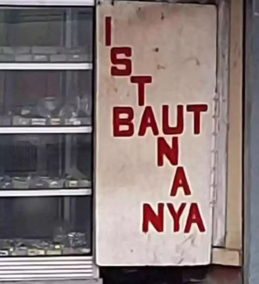 Yang Penting Heppiii. Sering banget lihat tulisan-tulisan di tempat umum, kan? Kadang itu buat peringatan, pemberitahuan, atau pengumuman. Fungsinya buat ngasih info dengan instruksi yang jelas, biar yang baca pada ngerti. Tapi, ada juga nih tulisan di tempat umum yang malah bikin bingung. Padahal, seharusnya tujuannya bikin kesadaran dan keselamatan. Tapi, gimana bisa sadar kalau makna tulisannya muter-muter dan bikin orang mikir keras dulu? Ini nih, kumpulan potret kocak yang pasti bikin yang baca ikut bingung.