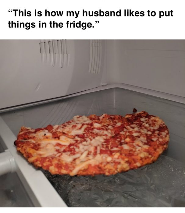 Cara suami simpan pizza di kulkas. Ckckck.