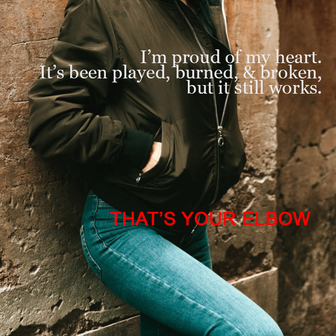 Saat kamu bangga sama hatimu, udah dimainin, ‘dibakar’, patah, tapi masih berfungsi, coba pikir lagi, mungkin itu cuma lenganmu.