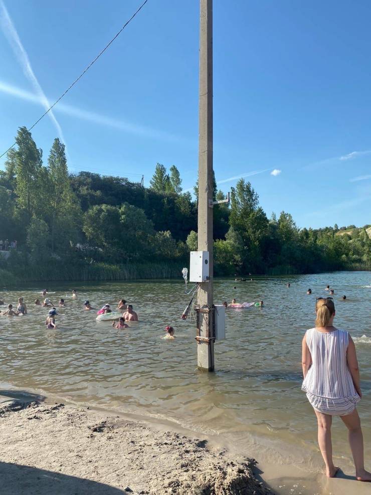 Masang tiang listrik di danau yang biasa buat berenang, hmmmm smart idea.