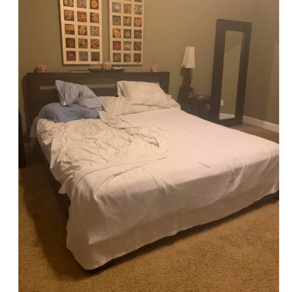 Karena ngambek, suaminya nata tempat tidur cuma separo.