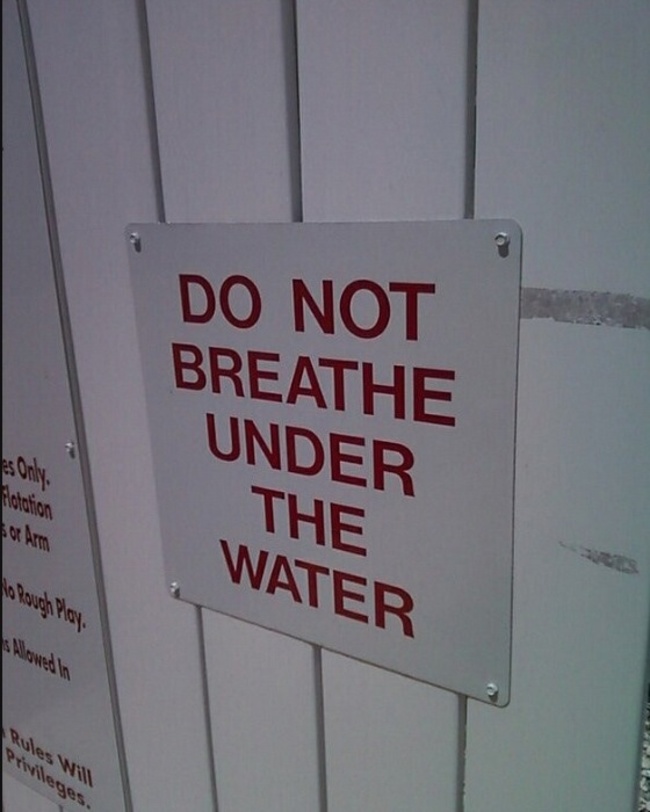 Yang Penting Heppiii. Kadang-kadang di suatu tempat, kita menemukan sebuah tanda peringatan yang menyatakan sesuatu yang sangat jelas, dan kamu jadi bingung, kenapa seseorang memutuskan untuk menempatkan tanda tersebut. Tapi lalu kamu berpikir, apa mungkin seseorang melakukan sesuatu yang begitu bodoh sehingga orang lain membuat tanda untuk mencegah orang lain melakukan sesuatu yang sama konyolnya. Tanda peringatan unfaedah di bawah ini adalah contoh sempurna, yang sukses membuang waktumu untuk membacanya. Cek deh, mana favoritmu?