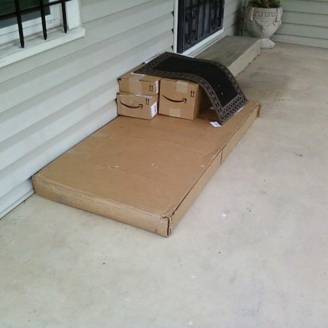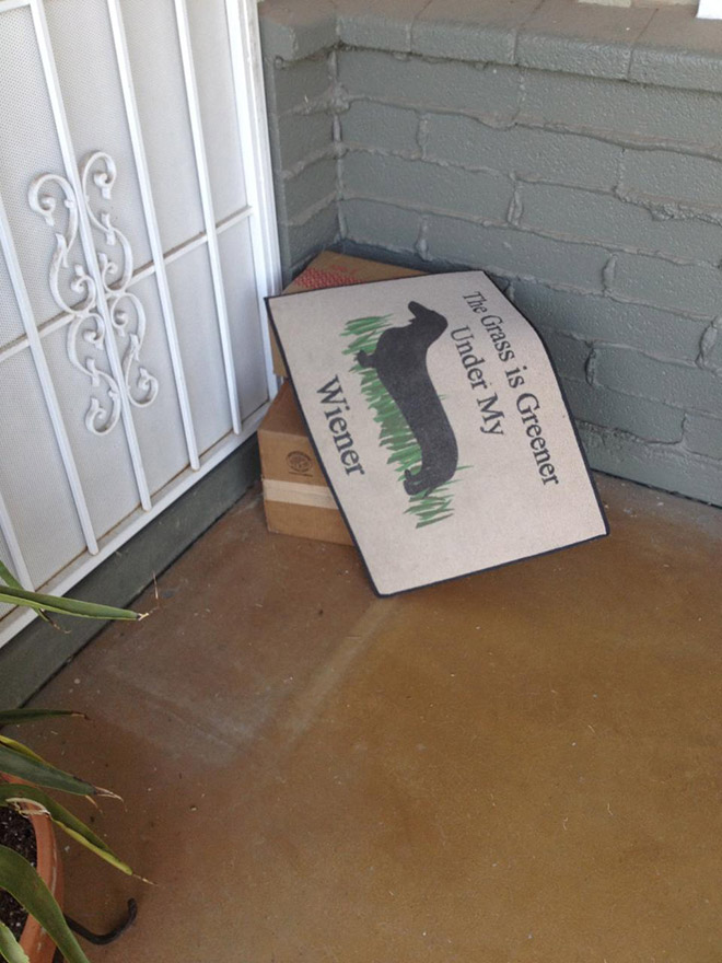 Yang Penting Heppiii. Di masa-masa kaya gini, orang pada milih belanja online daripada pergi ke toko offline. Dan pastinya bikin kurir-kurir ekspedisi jadi sibuk banget dong ya. Dalam sehari bisa-bisa puluhan rumah mereka datangi, yang mana nggak semua penghuninya lagi di rumah, tapi paket harus tetap nyampe tepat waktu. Nah, untuk menyiasati hal ini, para kurir biasa ninggalin paket di depan rumah, lucunya beberapa dari mereka naruhnya malah di tempat yang nyolok banget. Lihat aja deh, paket-paket di bawah keset ini, maksa banget nggak sih?