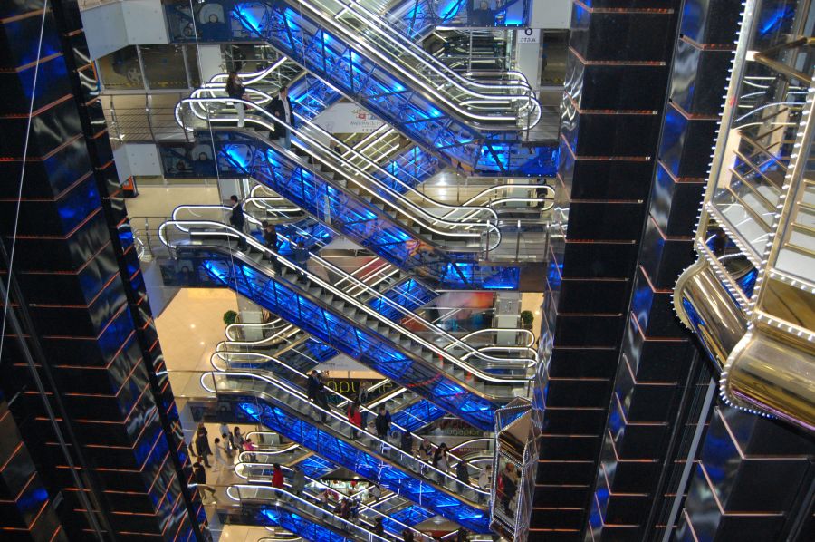 Mitsubishi adalah satu-satunya perusahaan yang sukses membuat eskalator melingkar bertingkat 7 di mal perbelanjaan terbesar di China. Nggak perlu tahu detail pembuatannya, yang jelas eskalator ini sulit dibuat, tapi benar-benar aman. Dan lagi, eskalator ini terlihat keren banget!