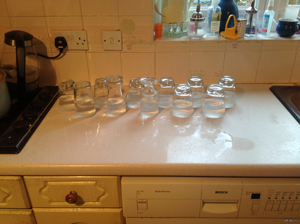 Semua gelas diisi air trus dibalik. Demi apa coba?