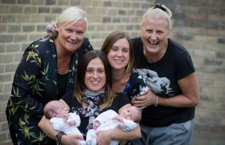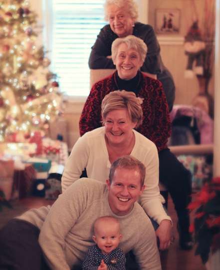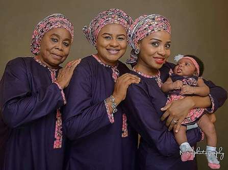 Foto tiga generasi keluarga kembar yang sederhana tapi manis