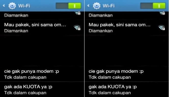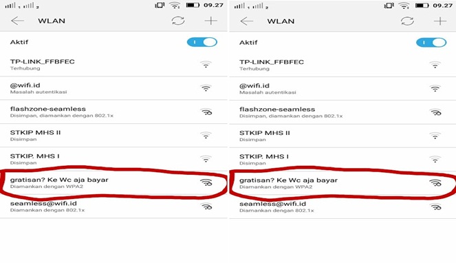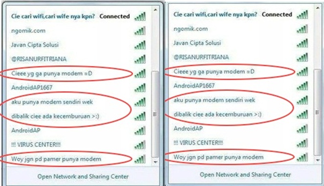 Yang Penting Heppiii. Hari gini minta gratisan, mana ada? Hal ini juga berlaku dengan Wifi. Orang yang bayar untuk bisa punya Wifi tentu nggak rela kalau Wifinya dipake sembarangan. Saking banyaknya yang minta gratisan, atau malah manfaatin fasilitas Wifi sembarangan, pemilik akses Wifi punya cara unik menanggapinya. Mereka biasanya menamai Wifi dengan kata-kata kocak sekaligus sindiran yang bisa jadi memancing hasrat untuk mengumpat. Kok bisa? Simak deh.