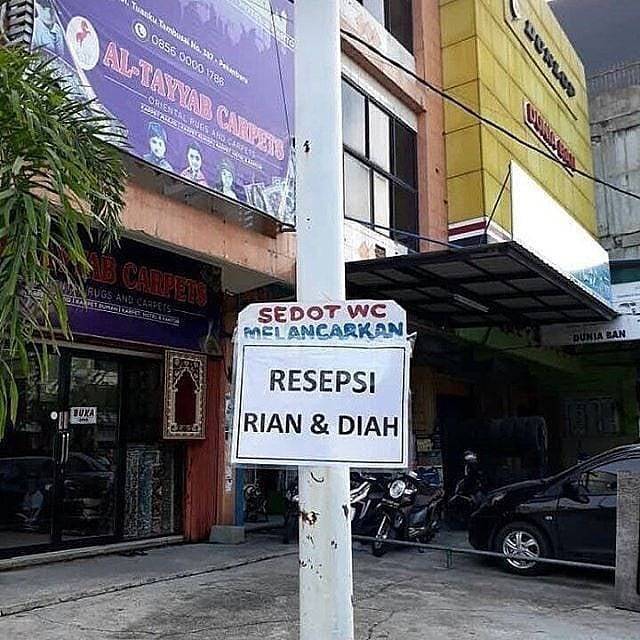 Yang Penting Heppiii. Kalau kamu punya usaha, papan tanda dan spanduk jadi alat penting untuk mempromosikan dagangan atau jasa yang kamu tawarkan. Makanya, penempatannya juga musti diperhatikan, nggak boleh sembarangan. Karena, dengan pemasangan yang tepat, maka informasi yang ingin kamu sampaikan bisa dilihat dengan baik oleh calon pelanggan. Nah, kalau masangnya salah, bisa-bisa bikin orang jadi mikir keras, bisa-bisa nggak jadi beli deh. Tujuh tulisan di bawah ini contohnya, jauh banget dari yang dimaksud, aneh deh.