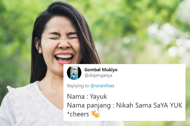 Yang Penting Heppiii. Nama adalah bahan paling empuk buat dijadiin becandaan. Biasanya sih paling sering, ngejek nama temen, atau ceng-ceng an nama bokap. Kali ini beda, cuitan warga Twitter di bawah ini malah rame-rame ngejekin nama diri sendiri, dengan ngarang kepanjangan namanya masing-masing. Simak kuy, ngakak banget.