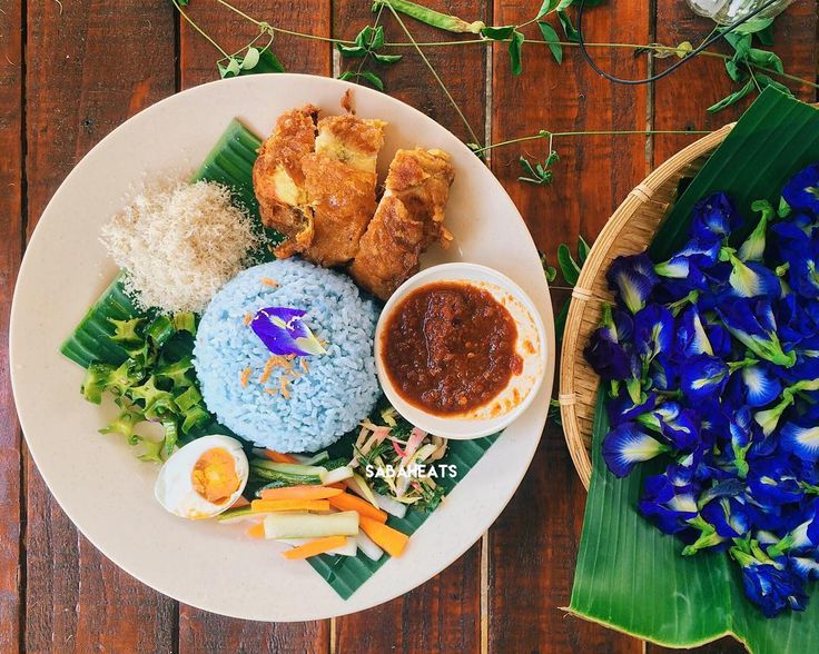Nasi Kerabu ini pakai pewarna dari bunga telang