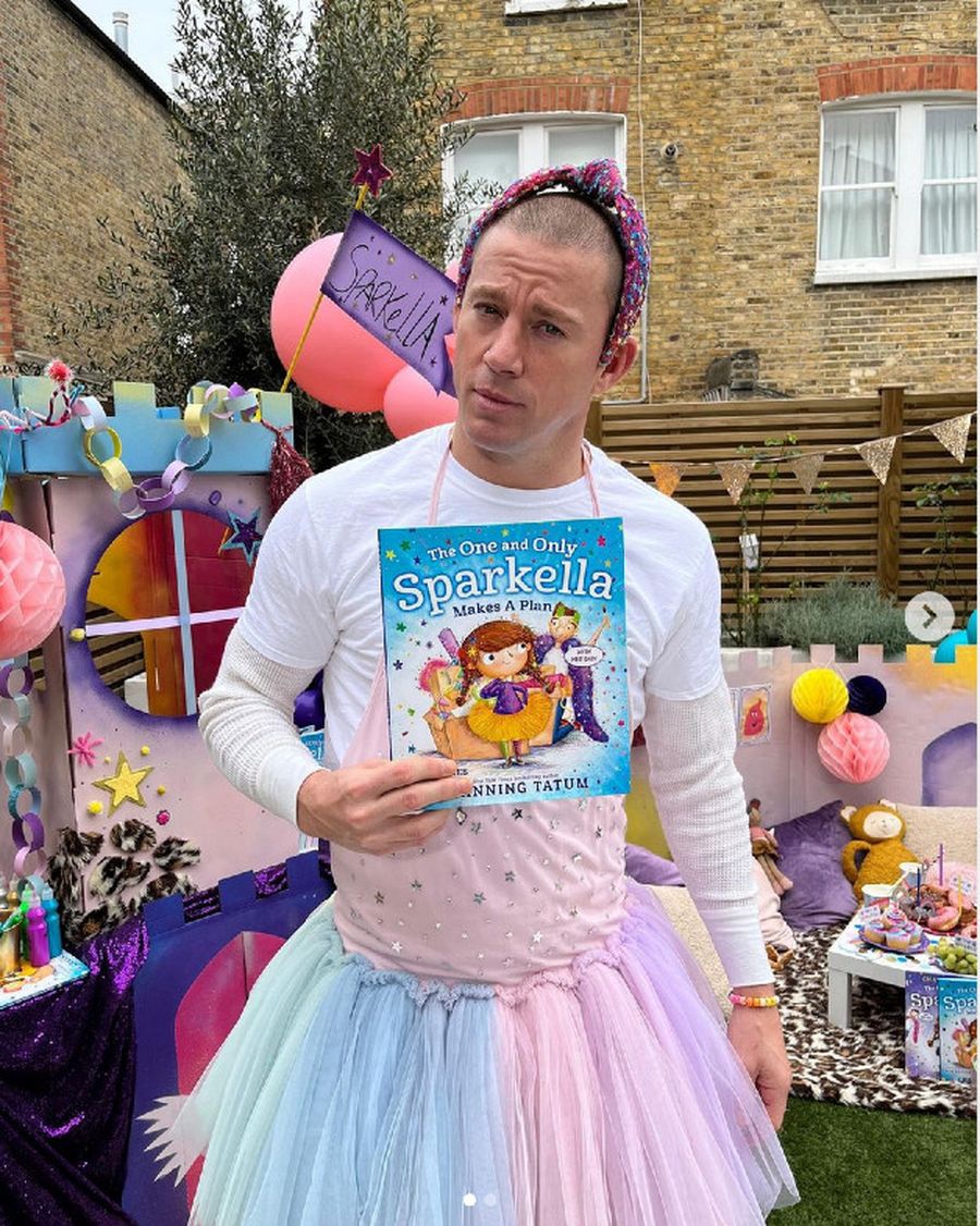 - Chaning tatum memakai kostum girlie untuk sang putri.