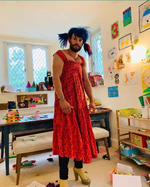 - Jamie dornan rela memakai gaun saat bermain dengan ketiga putrinya.