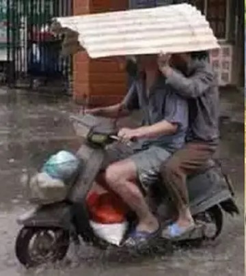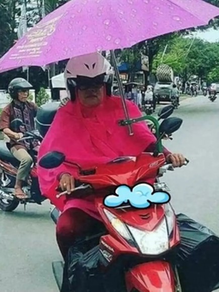 Bagi pemotor musim hujan tentu menjadi persoalan tersendiri. Jika nekat menerabas hujan tentu badan akan basah kuyup. Apabila mengenakan jas hujan tubuh pun akan tetap merasa dingin. Bagi yang tidak membawa jas hujan, mau tidak mau harus berteduh terlebih dahulu dan ini tentu saja akan menghambat perjalanan. Tapi tidak dengan beberapa orang ini sampai harus muter otak untuk menggantikan jas hujan dengan barang lain seperti payung, pasalnya kelakuan ini kocak banget.