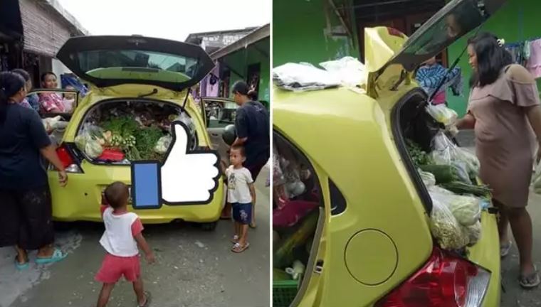 Wow luar biasa, mobil berubah jadi lapak sayur.