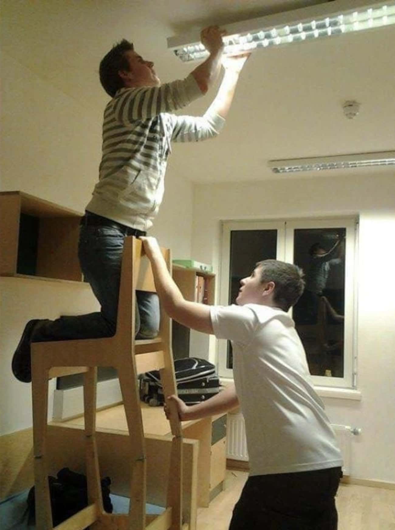Yang Penting Heppiii. Kita semua seharusnya tahu kan, kalau keselamatan selalu yang utama dalam pekerjaan apapun. Tapi dengan melihat foto-foto ini, keselamatan mungkin menjadi hal terakhir yang ada di pikiran sebagian orang. Di bawah ini adalah kumpulan kegagalan keamanan yang pasti akan membuat orang yang melihatnya cemas. Pilih bahaya keamanan yang paling konyol versimu berikut.