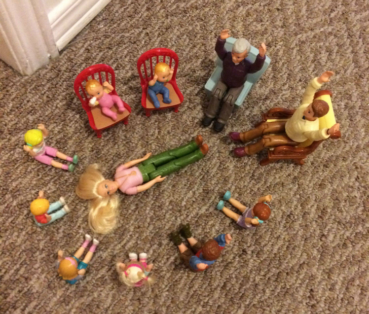 Anak 6 tahun lagi main Barbie, ceritanya mereka semua lagi mencoba ritual membangunkan ibunya yang sudah meninggal. Horor parah sih.